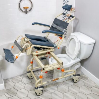 - Once in the bathroom, the SB2T can roll over most toilets to be used as an over-toilet commode.